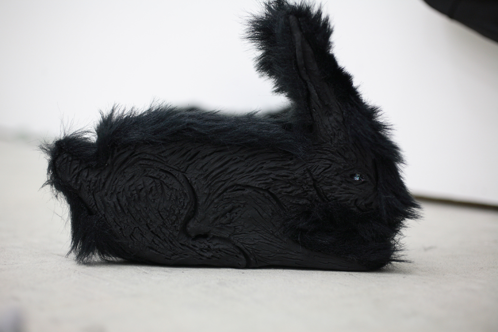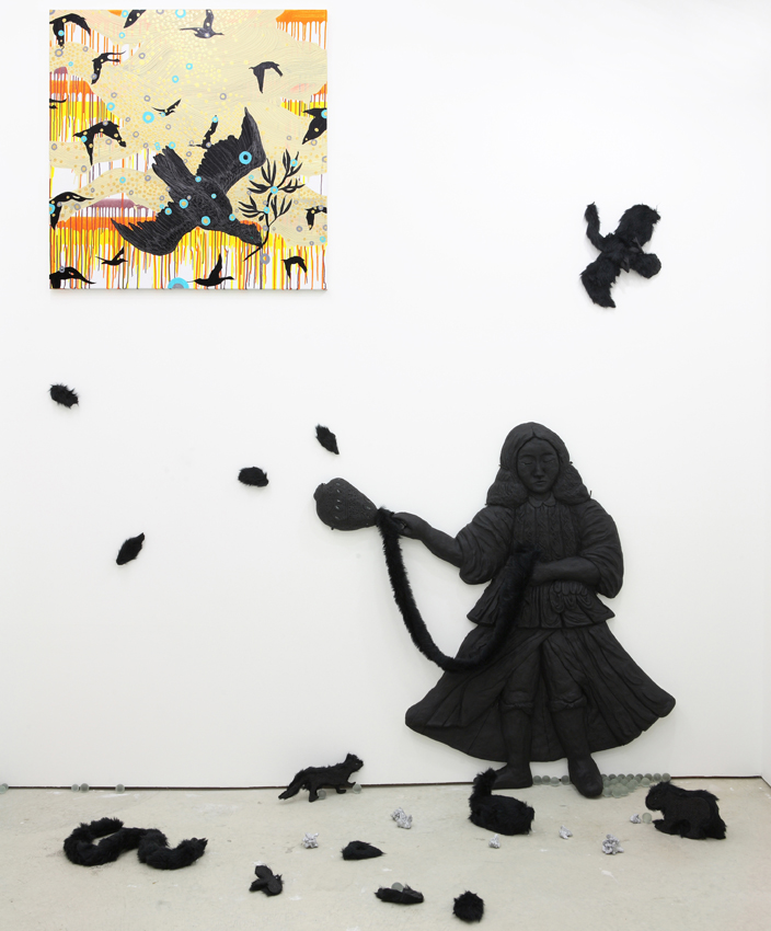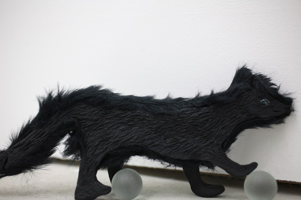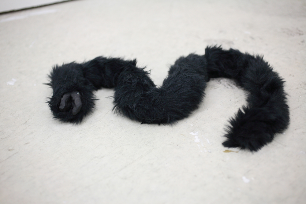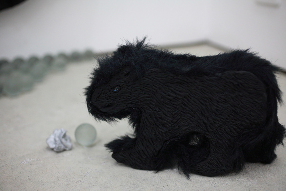 acrylic and pencil on canvas/Stone dust clay,fake fur , polystyrene foam and wood
